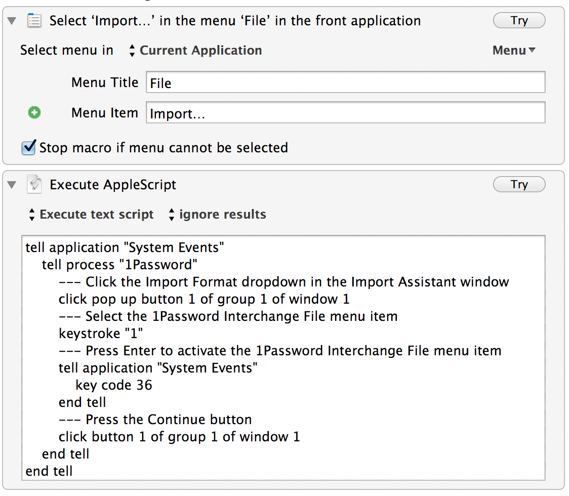 Now, tell me again: why won’t Agile Bits, makers of 1Password, just assign a key command to the Import command so this isn’t necessary?